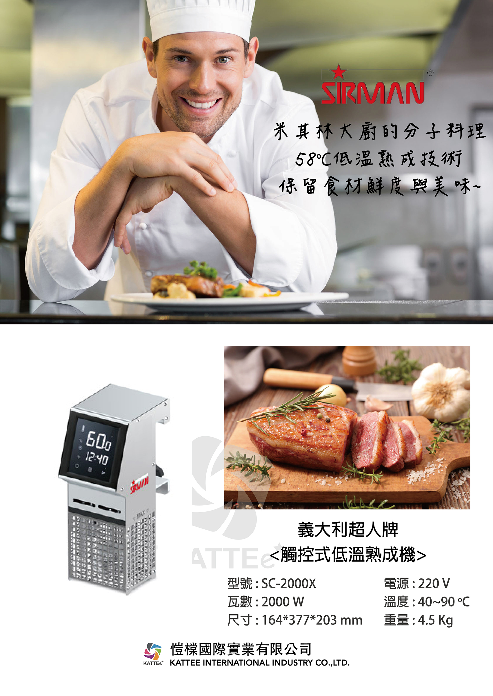 超人牌SIRMAN公司於1969年成立,不僅重著於產品的出口服務,並堅持所有商品皆在義大利本土生產,產品成功擴及全球126個國家,產品線包含餐廳,飯店,超市及加工廠,並擁有自己的研發中心,持續的努力與專重,使其成為歐洲食品餐飲設備之領導品牌.